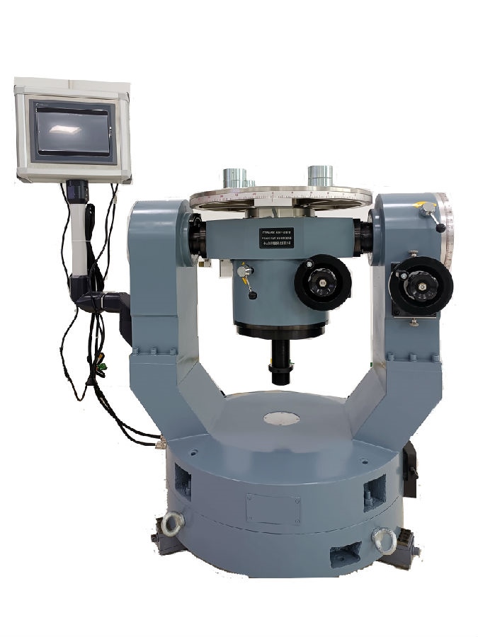 功能:該轉臺主要用于單獨或同時進行被測件的內、外環兩自由度的靜態姿態模擬,也可對檢測被測件的內、外環的角度輸出精度或標定。雙軸均為手動操作并具有微調功能和鎖緊裝置